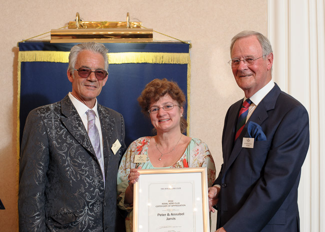 Photo by Martin Gammon for RAeC CERTIFICATE OF APPRECIATION OF THE ROYAL AERO CLUB "Peter and Annabel Jarvis (aka ‘The Bedford Cavalry’) have provided support and help to their local microlight community above and beyond the call of duty. Day to day they lead the Bedford Microlight Club, but their help and support goes far beyond this. Chris and Kay Bradford flew to Sandy late in 2011, and a very heavy landing resulted in a u/s aircraft. Peter and Annabel offered the Bradford's every |